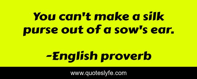 This page presents the quote "You can't make a silk purse out of a sow's ear.". Author of this quote is English proverb. .