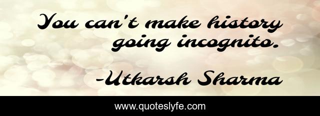 This page presents the quote "You can't make history going incognito.". Author of this quote is Utkarsh Sharma. This quote is about enthusiasm, just-do-it, business, inspirational, self-improvement,.