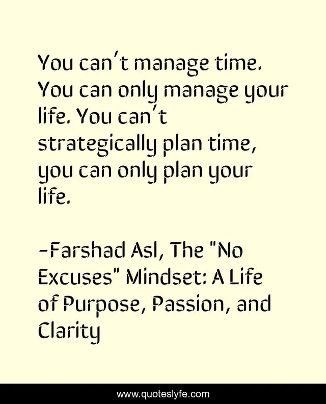 "Farshad Asl, The "No Excuses" Mindset: A Life of Purpose, Passion, and Clarity Quotes." Quoteslyfe.com, 2025. Fri. 05 Dec. 2025. <https://www.quoteslyfe.com/quote/You-can-t-manage-time-You-can-254434>.