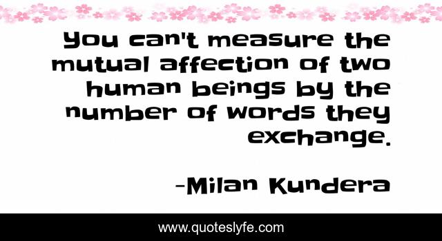 This page presents the quote "You can't measure the mutual affection of two human beings by the number of words they exchange.". Author of this quote is Milan Kundera. This quote is about love, affection,.