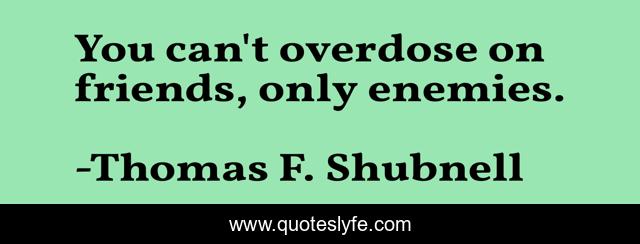 This page presents the quote "You can't overdose on friends, only enemies.". Author of this quote is Thomas F. Shubnell. .