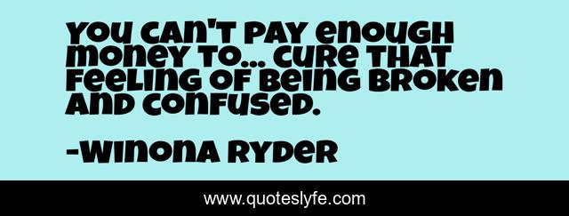 This page presents the quote "You can't pay enough money to... cure that feeling of being broken and confused.". Author of this quote is Winona Ryder. This quote is about broken, confused,.