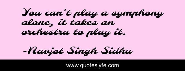 This page presents the quote "You can't play a symphony alone, it takes an orchestra to play it.". Author of this quote is Navjot Singh Sidhu. This quote is about play, orchestra,.