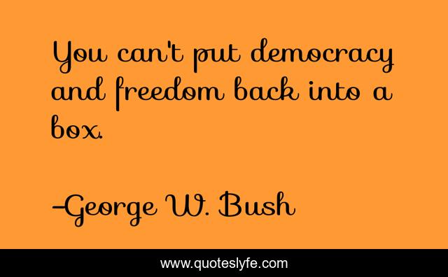 This page presents the quote "You can't put democracy and freedom back into a box.". Author of this quote is George W. Bush. This quote is about back, democracy,.