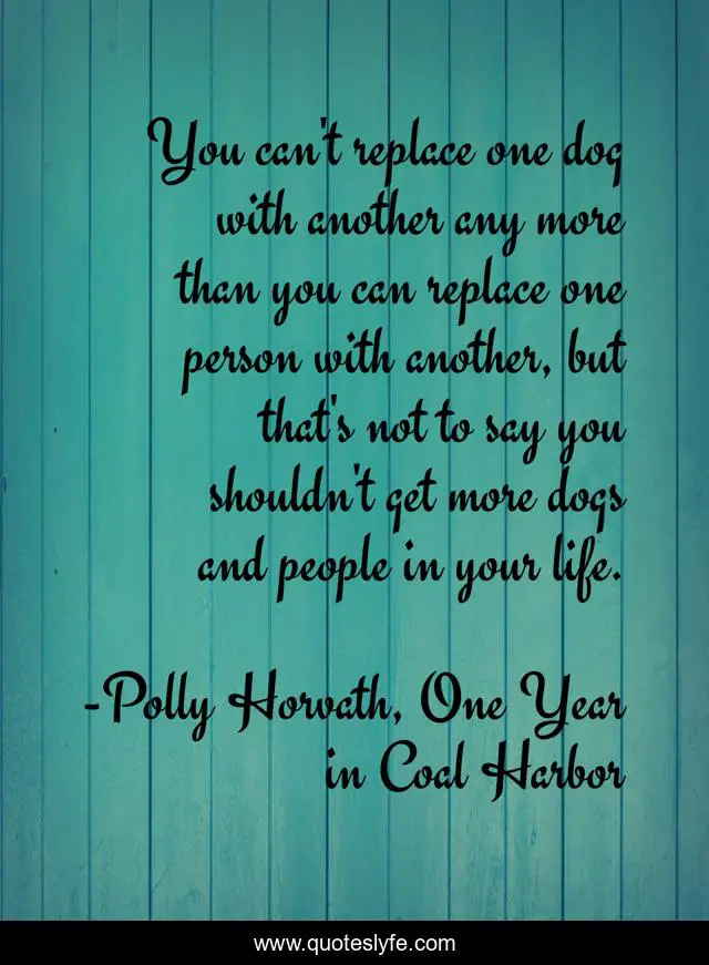 "Polly Horvath, One Year in Coal Harbor Quotes." Quoteslyfe.com, 2025. Fri. 05 Dec. 2025. <https://www.quoteslyfe.com/quote/You-can-t-replace-one-dog-with-229601>.