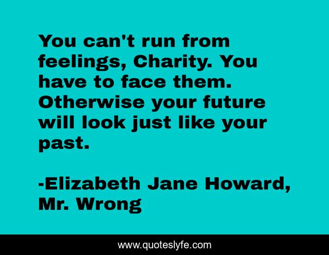 This page presents the quote "You can't run from feelings, Charity. You have to face them. Otherwise your future will look just like your past.". Author of this quote is Elizabeth Jane Howard, Mr. Wrong. This quote is about wisdom-inspirational, feelings,.