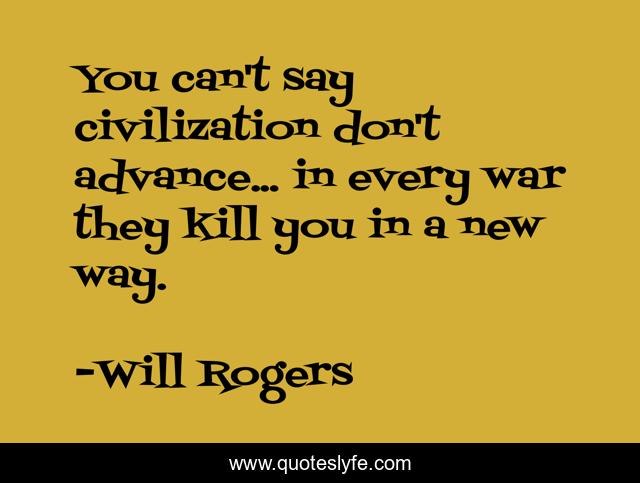 This page presents the quote "You can't say civilization don't advance... in every war they kill you in a new way.". Author of this quote is Will Rogers. This quote is about new, way,.