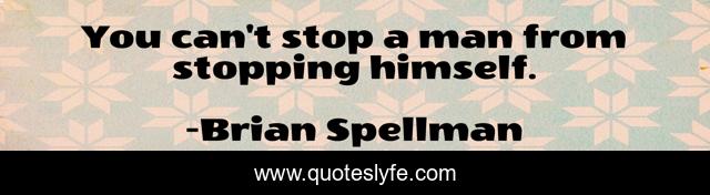 This page presents the quote "You can't stop a man from stopping himself.". Author of this quote is Brian Spellman. This quote is about suicide, suicide-attempt,.