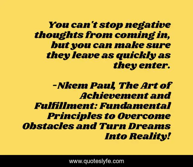 "Nkem Paul, The Art of Achievement and Fulfillment: Fundamental Principles to Overcome Obstacles and Turn Dreams Into Reality! Quotes." Quoteslyfe.com, 2025. Fri. 05 Dec. 2025. <https://www.quoteslyfe.com/quote/You-can-t-stop-negative-thoughts-from-194470>.