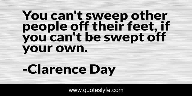 This page presents the quote "You can't sweep other people off their feet, if you can't be swept off your own.". Author of this quote is Clarence Day. This quote is about feet, people,.