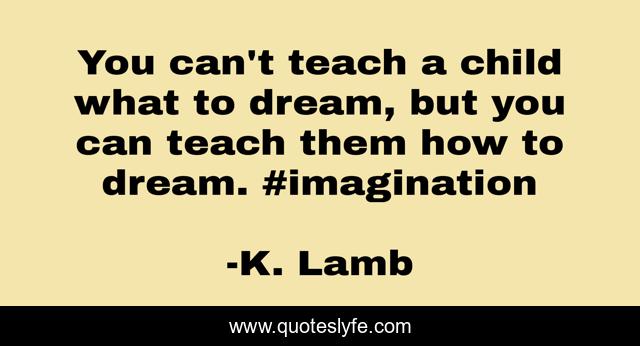 This page presents the quote "You can't teach a child what to dream, but you can teach them how to dream. #imagination". Author of this quote is K. Lamb. This quote is about inspire, imagination, read, quotes, learn, teach, dream,.
