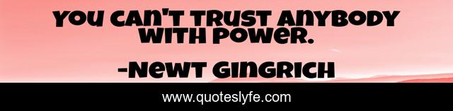 This page presents the quote "You can't trust anybody with power.". Author of this quote is Newt Gingrich. This quote is about anybody, power,.