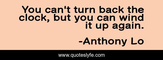 This page presents the quote "You can't turn back the clock, but you can wind it up again.". Author of this quote is Anthony Lo. .
