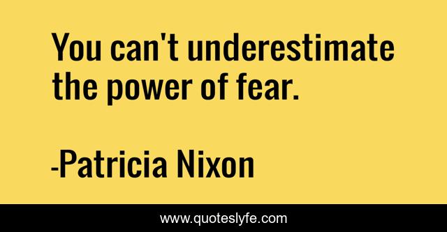 This page presents the quote "You can't underestimate the power of fear.". Author of this quote is Patricia Nixon. .