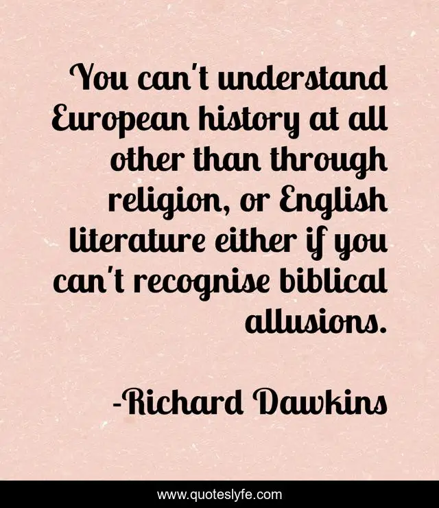 This page presents the quote "You can't understand European history at all other than through religion, or English literature either if you can't recognise biblical allusions.". Author of this quote is Richard Dawkins. This quote is about literature, history,.