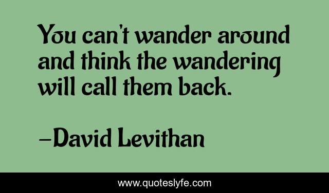 This page presents the quote "You can't wander around and think the wandering will call them back.". Author of this quote is David Levithan. This quote is about breakup, heartbreak, love, affection,.