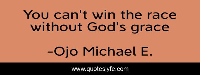 This page presents the quote "You can't win the race without God's grace". Author of this quote is Ojo Michael E.. This quote is about god, winners, grace,.