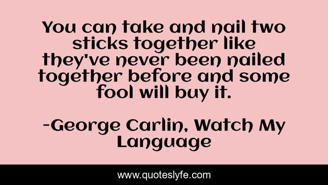 This page presents the quote "You can take and nail two sticks together like they've never been nailed together before and some fool will buy it.". Author of this quote is George Carlin, Watch My Language. This quote is about humor, musician, rock-and-roll, concerts, sales,.