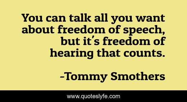 This page presents the quote "You can talk all you want about freedom of speech, but it's freedom of hearing that counts.". Author of this quote is Tommy Smothers. This quote is about openness, listening,.