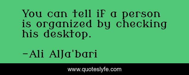 This page presents the quote "You can tell if a person is organized by checking his desktop.". Author of this quote is Ali AlJa'bari. This quote is about funny, philosophy, office, people, work, organized, computer, fun, organization,.