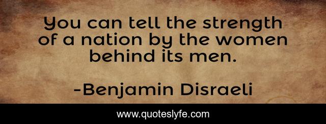 This page presents the quote "You can tell the strength of a nation by the women behind its men.". Author of this quote is Benjamin Disraeli. This quote is about men, women,.