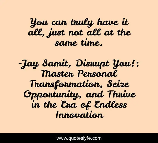 "Jay Samit, Disrupt You!: Master Personal Transformation, Seize Opportunity, and Thrive in the Era of Endless Innovation Quotes." Quoteslyfe.com, 2025. Fri. 05 Dec. 2025. <https://www.quoteslyfe.com/quote/You-can-truly-have-it-all-just-106506>.