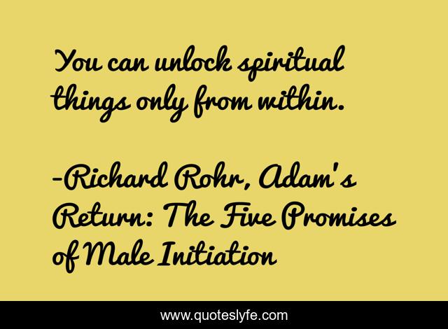 "Richard Rohr, Adam's Return: The Five Promises of Male Initiation Quotes." Quoteslyfe.com, 2025. Sat. 06 Dec. 2025. <https://www.quoteslyfe.com/quote/You-can-unlock-spiritual-things-only-from-135323>.