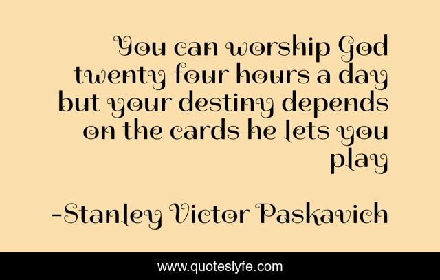 This page presents the quote "You can worship God twenty four hours a day but your destiny depends on the cards he lets you play". Author of this quote is Stanley Victor Paskavich. This quote is about faith, belief, god, jesus, religion, after-life, worship,.