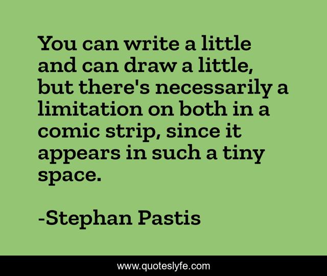 This page presents the quote "You can write a little and can draw a little, but there's necessarily a limitation on both in a comic strip, since it appears in such a tiny space.". Author of this quote is Stephan Pastis. This quote is about little, comic,.