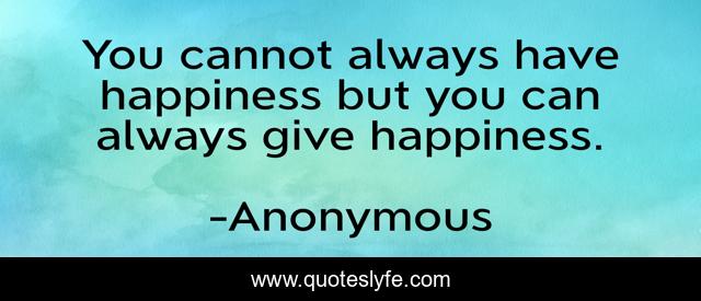 This page presents the quote "You cannot always have happiness but you can always give happiness.". Author of this quote is Anonymous. .