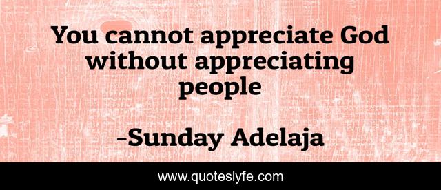 This page presents the quote "You cannot appreciate God without appreciating people". Author of this quote is Sunday Adelaja. This quote is about love, people, money, principles, employment, worship, celebrating-people, destiny, service,.