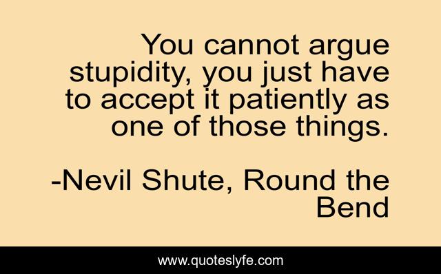 This page presents the quote "You cannot argue stupidity, you just have to accept it patiently as one of those things.". Author of this quote is Nevil Shute, Round the Bend. .