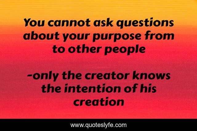 This page presents the quote "You cannot ask questions about your purpose from to other people". Author of this quote is only the creator knows the intention of his creation. .