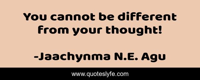 "Jaachynma N.E. Agu Quotes." Quoteslyfe.com, 2025. Fri. 05 Dec. 2025. <https://www.quoteslyfe.com/quote/You-cannot-be-different-from-your-thought-88900>.