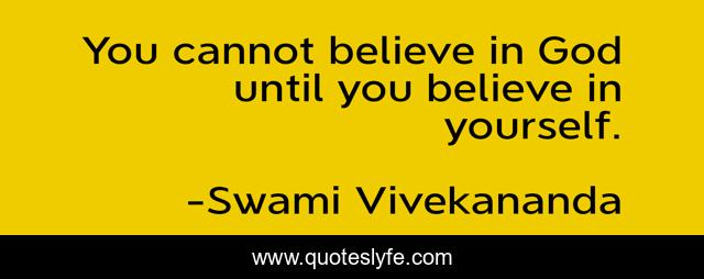 This page presents the quote "You cannot believe in God until you believe in yourself.". Author of this quote is Swami Vivekananda. This quote is about god, believe in yourself,.