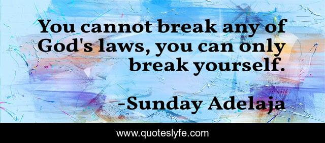 This page presents the quote "You cannot break any of God's laws, you can only break yourself.". Author of this quote is Sunday Adelaja. This quote is about break, cannot, laws, yourself,.
