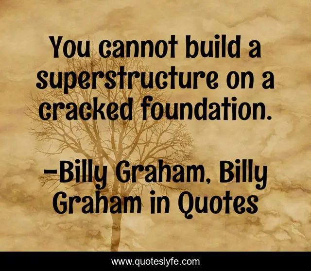This page presents the quote "You cannot build a superstructure on a cracked foundation.". Author of this quote is Billy Graham, Billy Graham in Quotes. This quote is about christian-life, billy-graham,.