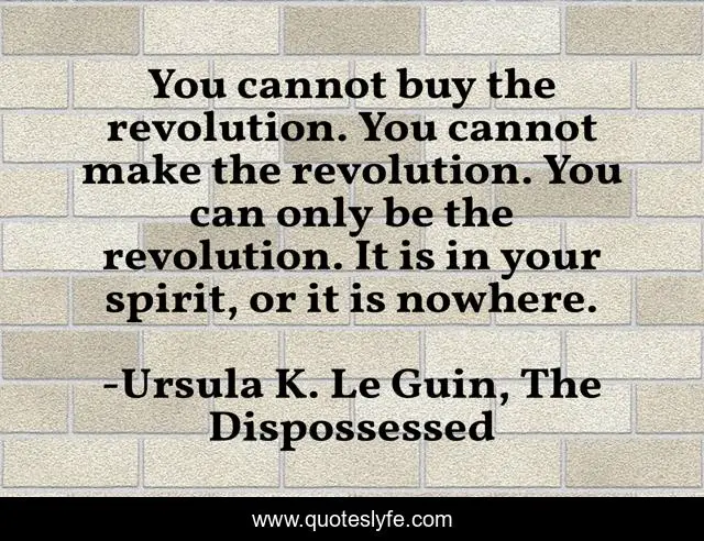 "Ursula K. Le Guin, The Dispossessed Quotes." Quoteslyfe.com, 2025. Fri. 05 Dec. 2025. <https://www.quoteslyfe.com/quote/You-cannot-buy-the-revolution-You-cannot-206882>.