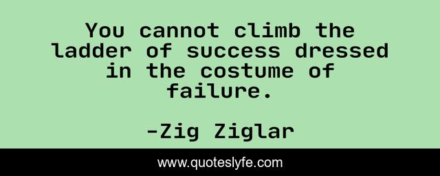 This page presents the quote "You cannot climb the ladder of success dressed in the costume of failure.". Author of this quote is Zig Ziglar. This quote is about climb, success,.