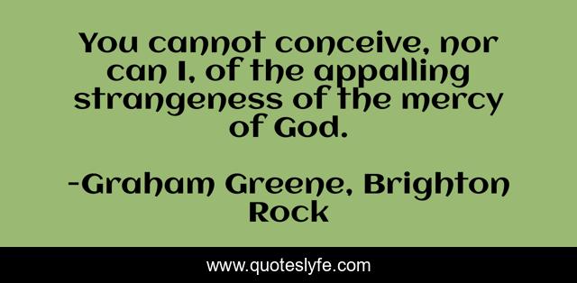 This page presents the quote "You cannot conceive, nor can I, of the appalling strangeness of the mercy of God.". Author of this quote is Graham Greene, Brighton Rock. This quote is about god, mercy,.