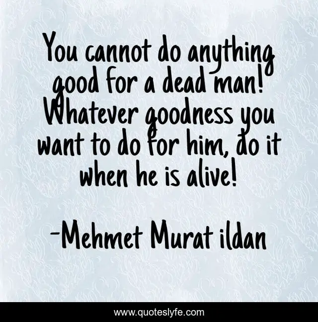 This page presents the quote "You cannot do anything good for a dead man! Whatever goodness you want to do for him, do it when he is alive!". Author of this quote is Mehmet Murat ildan. .