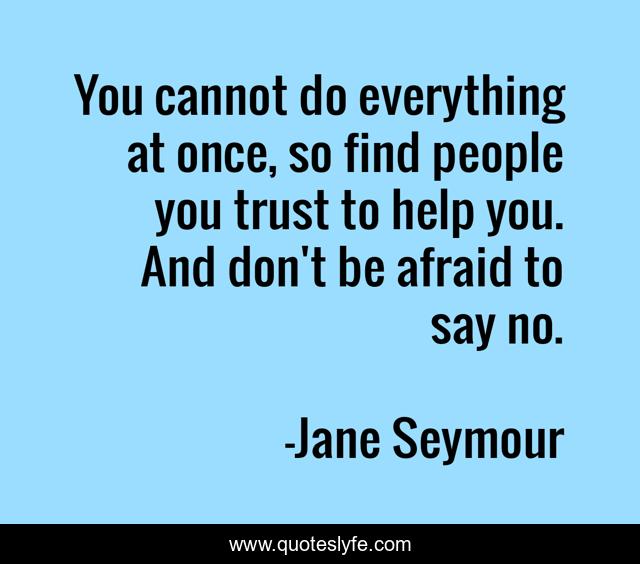 This page presents the quote "You cannot do everything at once, so find people you trust to help you. And don't be afraid to say no.". Author of this quote is Jane Seymour. This quote is about help, people,.