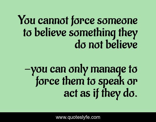 "you can only manage to force them to speak or act as if they do. Quotes." Quoteslyfe.com, 2025. Fri. 05 Dec. 2025. <https://www.quoteslyfe.com/quote/You-cannot-force-someone-to-believe-something-56443>.