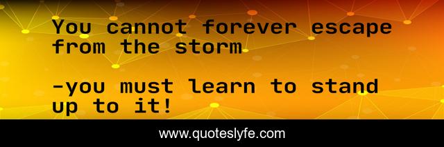 This page presents the quote "You cannot forever escape from the storm". Author of this quote is you must learn to stand up to it!. .