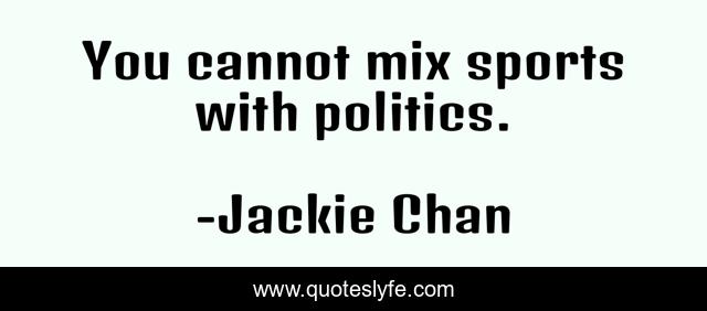 This page presents the quote "You cannot mix sports with politics.". Author of this quote is Jackie Chan. This quote is about politics, mix,.