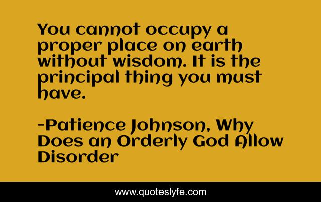 "Patience Johnson, Why Does an Orderly God Allow Disorder Quotes." Quoteslyfe.com, 2025. Fri. 05 Dec. 2025. <https://www.quoteslyfe.com/quote/You-cannot-occupy-a-proper-place-on-47863>.