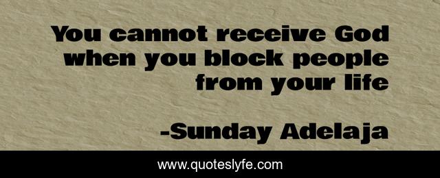 This page presents the quote "You cannot receive God when you block people from your life". Author of this quote is Sunday Adelaja. This quote is about love, people, money, principles, worship, destiny, god, nature-of-god, image-of-god,.
