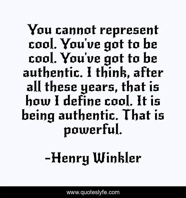 This page presents the quote "You cannot represent cool. You've got to be cool. You've got to be authentic. I think, after all these years, that is how I define cool. It is being authentic. That is powerful.". Author of this quote is Henry Winkler. This quote is about powerful, think,.