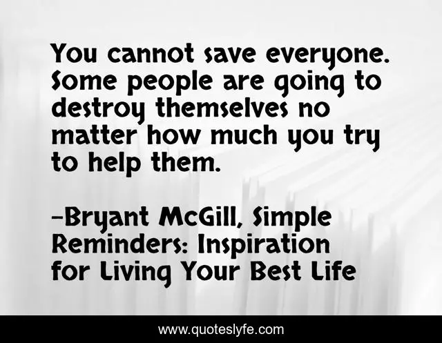 "Bryant McGill, Simple Reminders: Inspiration for Living Your Best Life Quotes." Quoteslyfe.com, 2025. Fri. 05 Dec. 2025. <https://www.quoteslyfe.com/quote/You-cannot-save-everyone-Some-people-are-198719>.
