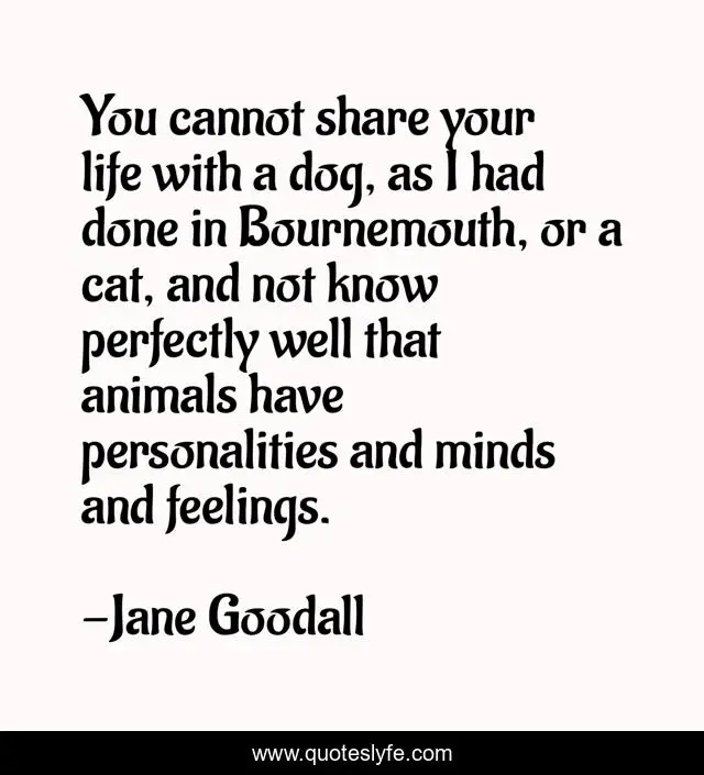 This page presents the quote "You cannot share your life with a dog, as I had done in Bournemouth, or a cat, and not know perfectly well that animals have personalities and minds and feelings.". Author of this quote is Jane Goodall. This quote is about life, animals, dog,.